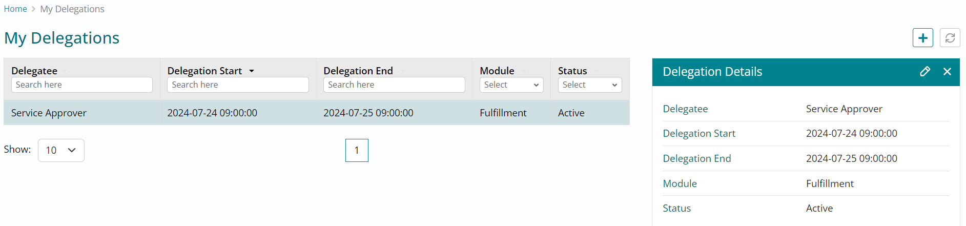 - The delegation will be saved, and you can click on it from the My Delegations list view to browse through its details.
