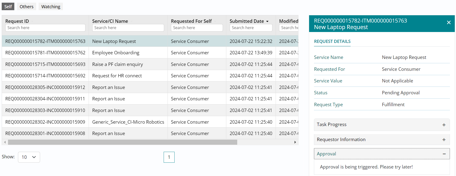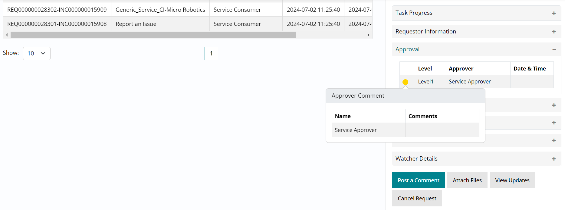 whom the approval is pending; in this case it is Service Approver i.e., the approval user