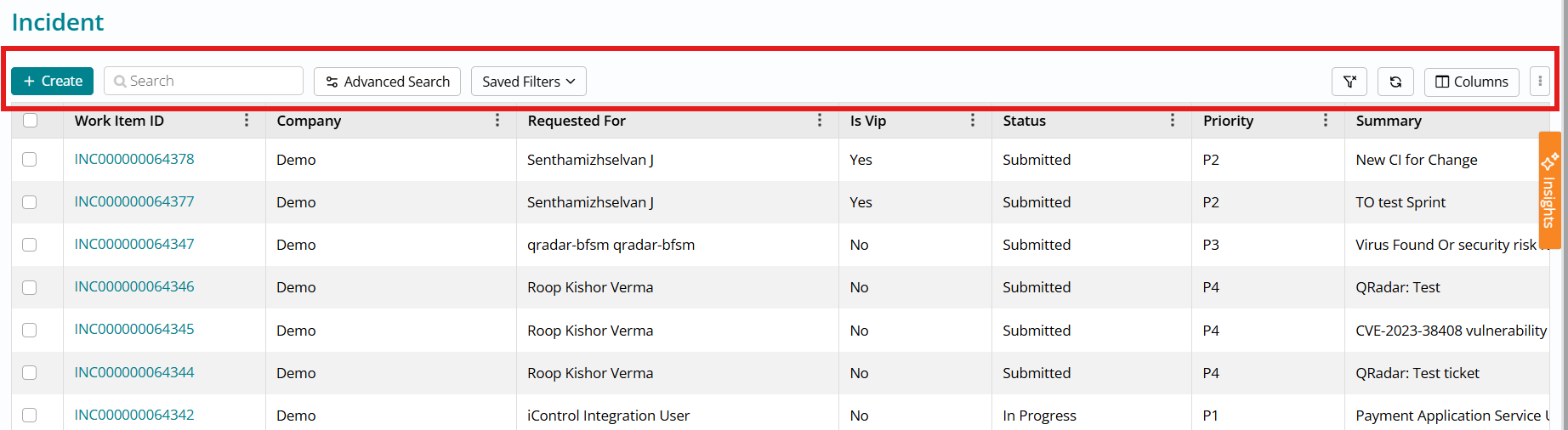 This capability spans Incident, Fulfillment, and Interaction modules, providing consistent VIP visibility across all service management workflows.