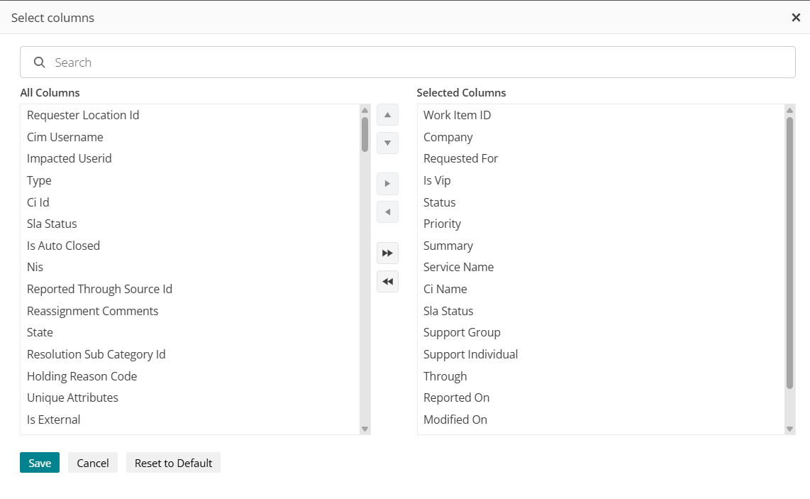 Introducing rich list view personalization across all Work Item Board sub-menus (Tasks, Fulfillment, Incident, Problem, Change, Interaction, Appointment, Walk-up, Action), allowing support users to control which columns they see and how lists behave for their roles.