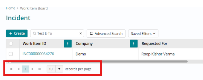 Users can manage views and pagination directly from the list. Using the ellipse menu next to Columns, they can switch between configured Views (for example, INCIDENT LIST) and administrators can control available page-size options per View from the View configuration page, letting users choose how many records to display per page.