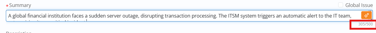 Summary : Character Length of the Task template Summary field changed to 500 Characters