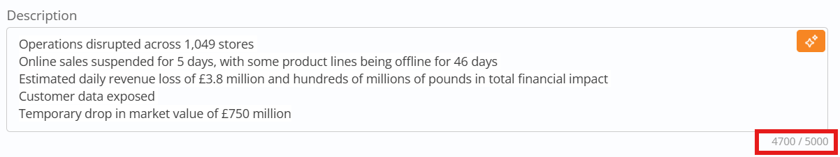 - Maintain Description at 5000 characters.