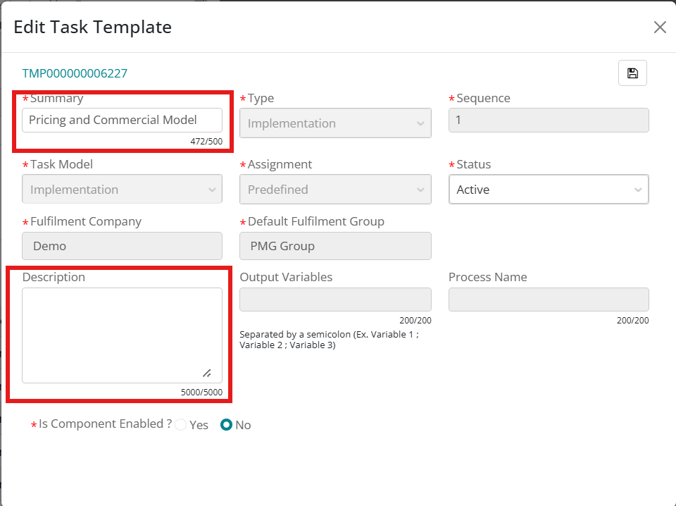 Description :Character Length of the Task template Summary field changed to 5000 Characters