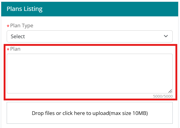 Plan : Character Length of the Plan field changed to 5000 characters on Change Plan section