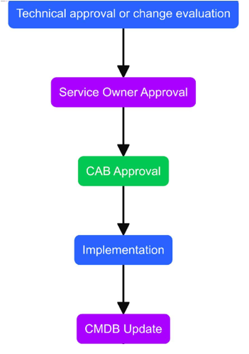 As soon as RFC (Request for Change) is created, it will be routed to the Change Management team and will be catered through the Change Management Process based on its priority.