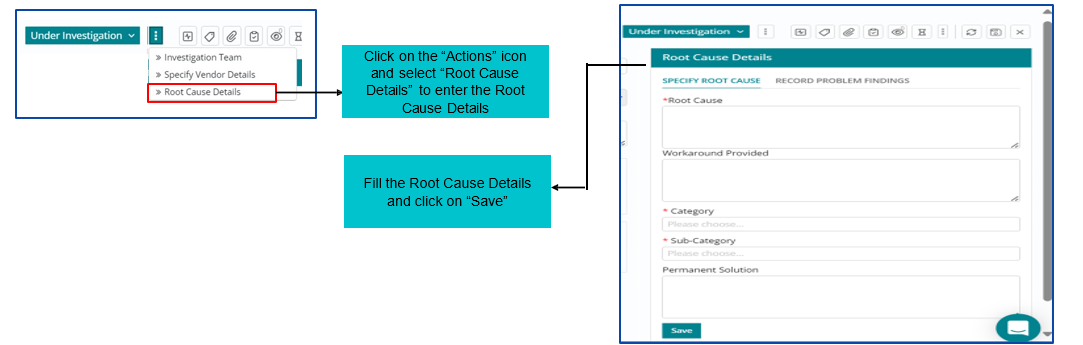 Post adding Root cause Details users can click on Root Cause Identified option to move forward with the Problem Management Workflow.