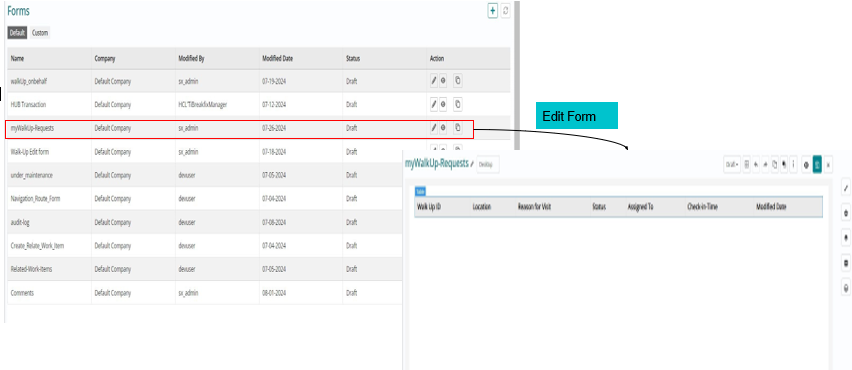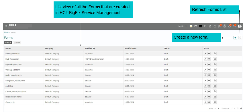 UI Builder lets you see a list of all the forms that have been created for HCL BigFix Service Management UI Builder.