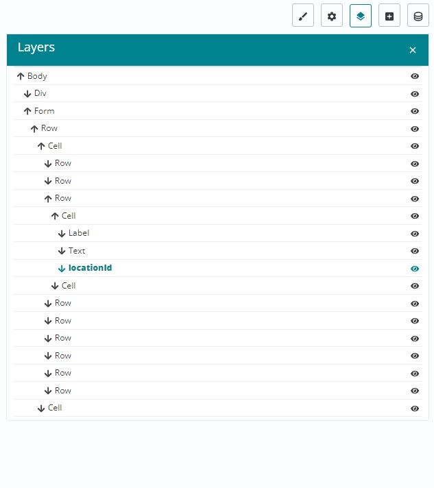 Layers button allows to view the structure of a page (as per the HTML DOM). With the help of Layers, the controls can be accessed/selected for making any changes to its properties.