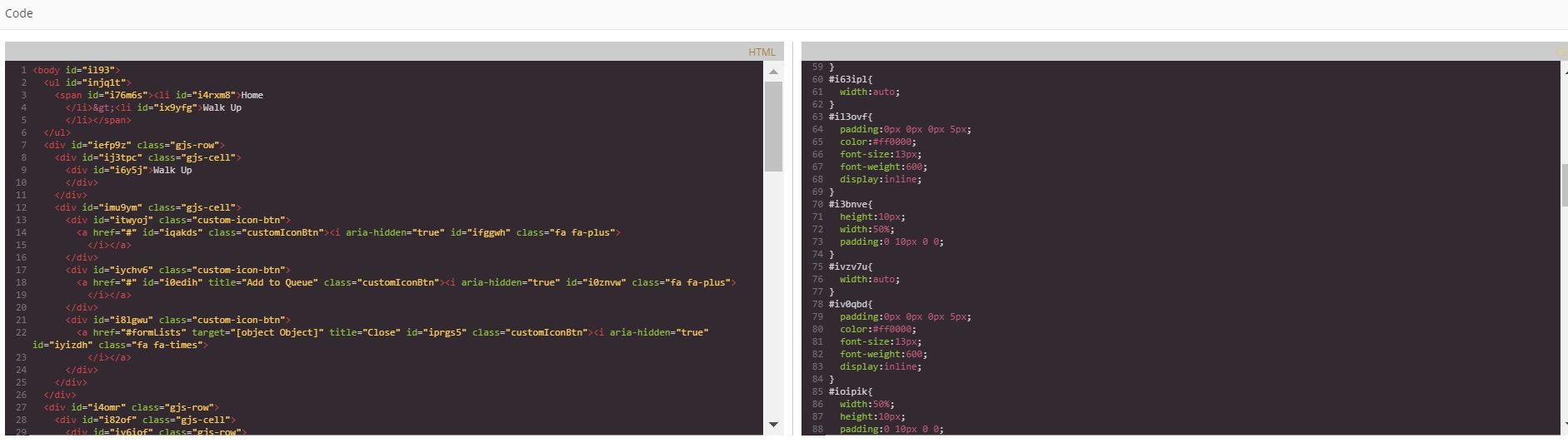HTML and CSS code can be viewed using the View Code option. Currently this is non-editable.