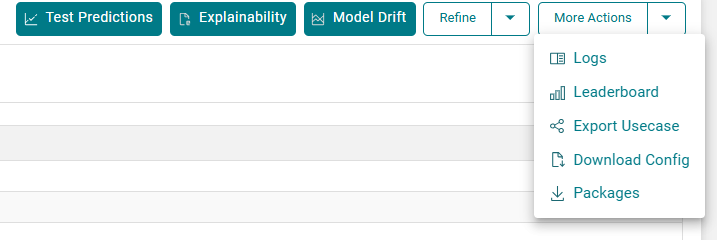 This feature allows users to export the complete configuration of their AI use case as a JSON file. The file captures essential details such as model name and version, selected analysis type (e.g., regression), data and output paths, completed workflow steps, file settings, and chosen algorithms. It serves as a snapshot of the model’s setup.