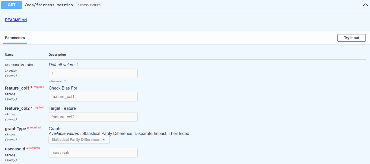 - graphType (string, required: Statistical Parity Difference, Disparate Impact, Theil Index)