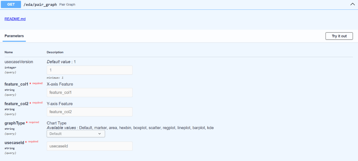 - graphType (string, required: e.g., scatter, boxplot, regplot, kde)