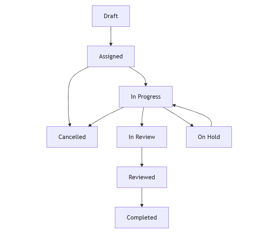 - Status – Assigned, In Progress, Completed and Cancelled.