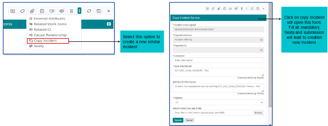 More Options- Copy Incident Feature