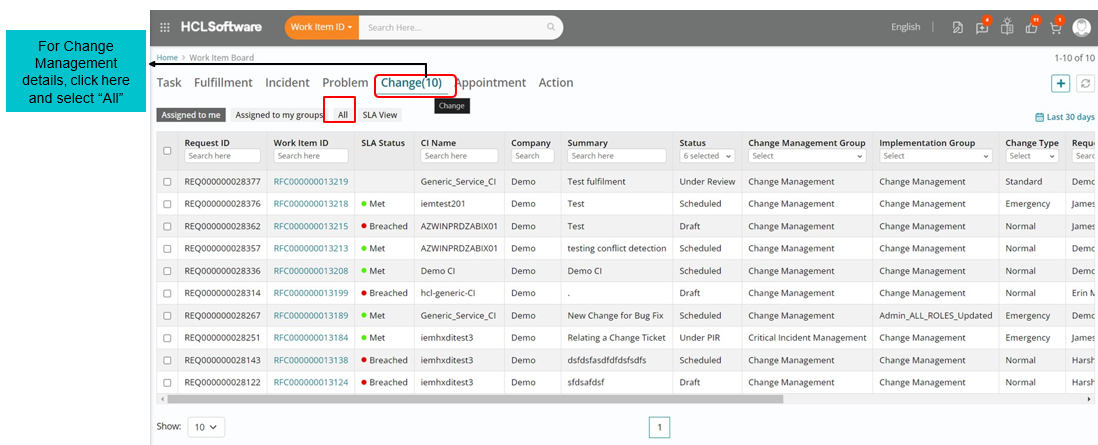 Once PIR is completed, status of Change Work Item Lifecycle moves to ‘Completed’.