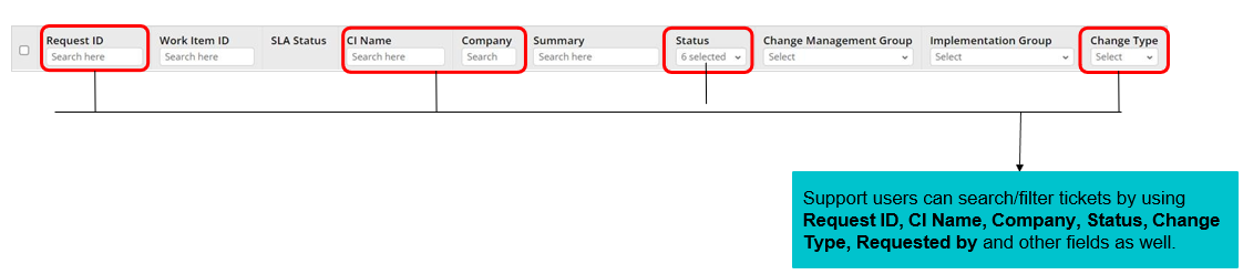 - Support user can check the Approving authority name’s applicable to a specific Work Item by the options explained in the snapshot below.