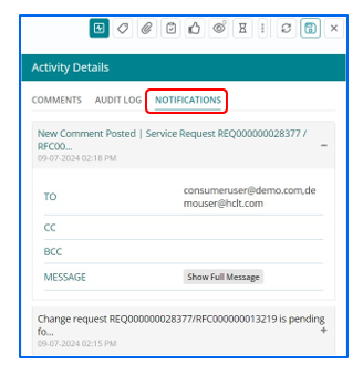 - Notifications contains the notifications sent for the change ticket.
