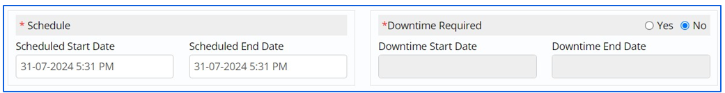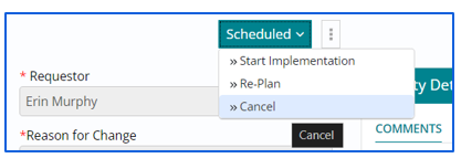 - Re-planning an Implementation provides user with options to amend Start and End Date of Implementation along with alterations in Downtime.