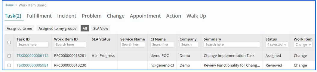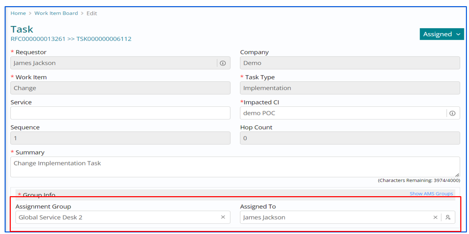 Support users can create and assign tasks for multiple support group if needed to work on same Change Work Item.