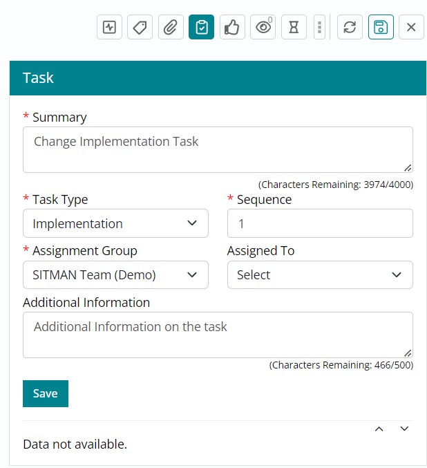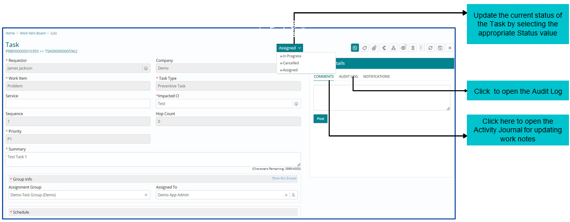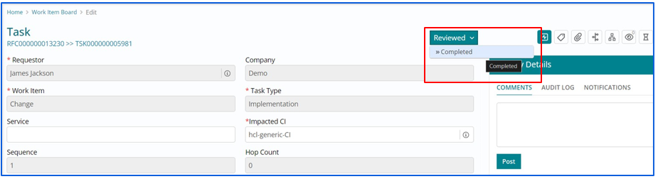 After implementing the task, the Support User must update the Task Status to ‘Completed’
