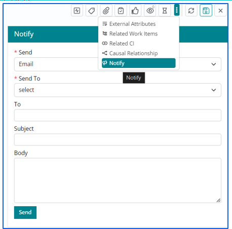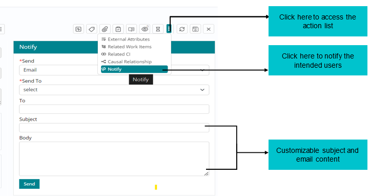 - Support User can Notify the intended audience by sending emails to the respective recipients through the Notify option.