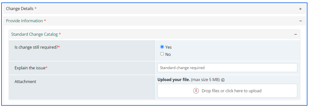 - In HCL BigFix Service Management, catalog manager exposes “Standard Change” catalog item in the Home page of “Shopping Catalog”.