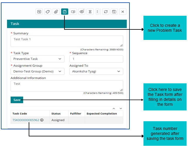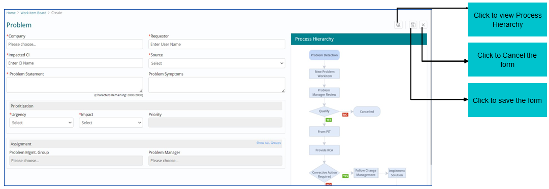 To create a Problem Work Item, all mandatory fields need to be filled in the below form.