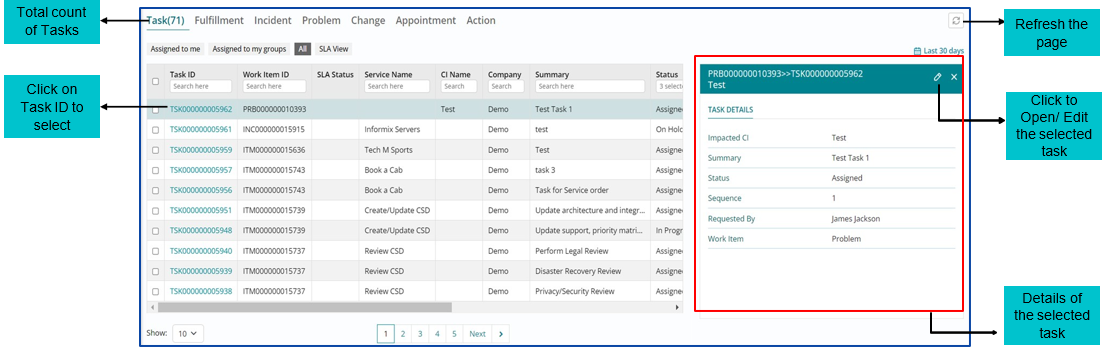 - Support User can view Task from the Task List View page by clicking the ‘Edit’ or ‘Pencil’ icon.