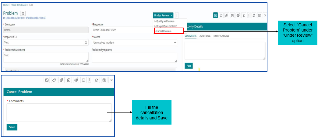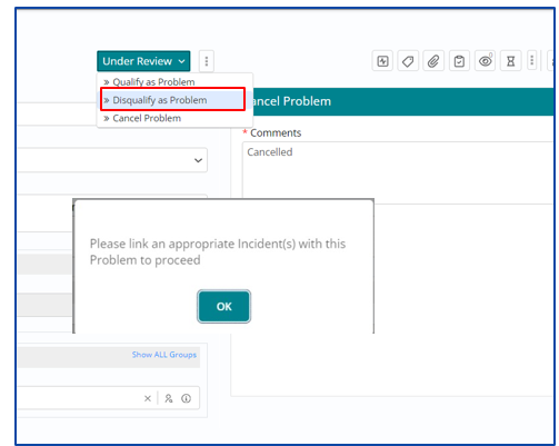 Problem Ticket can be Qualified, Disqualified or Cancelled by Problem Manager.