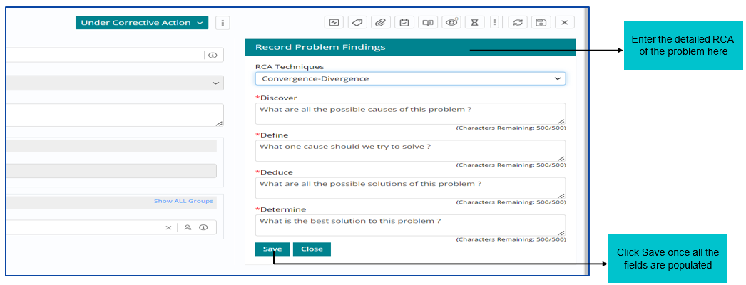 After that user can fill in the Root Cause details in Root Cause Details section of the form and click on Save.
