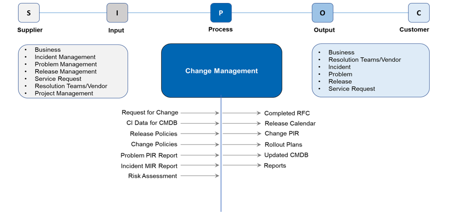 - Change: Any addition, deletion or modification in IT Infrastructure which can cause positive or negative impact to IT Services.