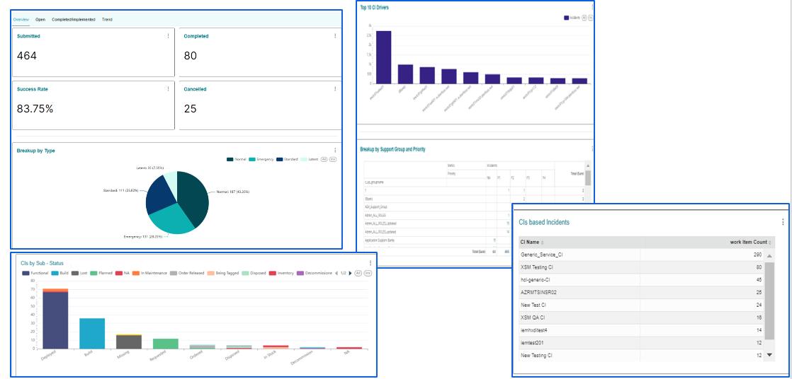ways, such as the top 10 CI drivers for incidents, changes by CI, and problems by