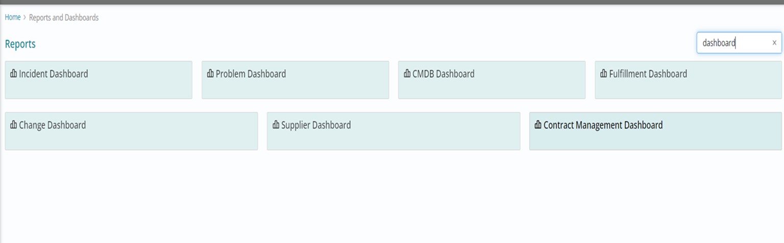 There are many different types of ITSM dashboards that can be created, depending on the organization's specific needs. Currently, the following dashboards have been incorporated into the scope for the Reports and Dashboards system under this category: