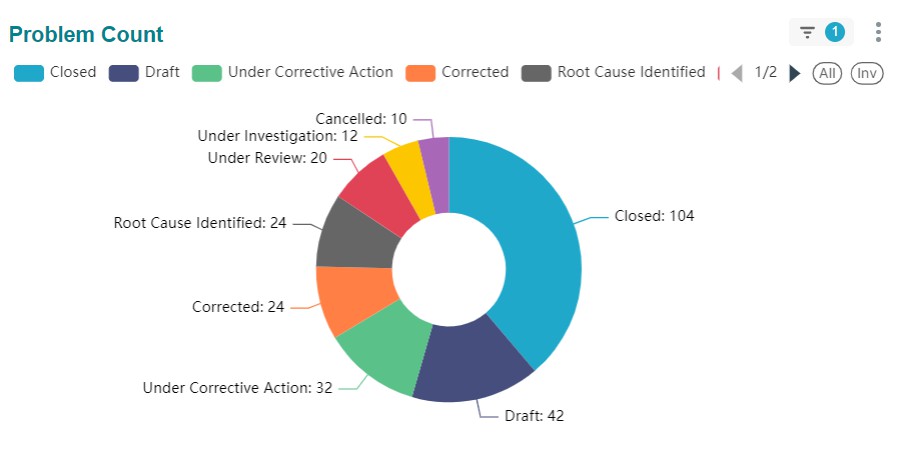 For example, a pie chart could be used to show that 50% of incidents were classified as high priority, 30% were classified as medium priority, and 20% were classified as low priority. Users can filter the entire dashboard by clicking on any slice of the pie chart based.