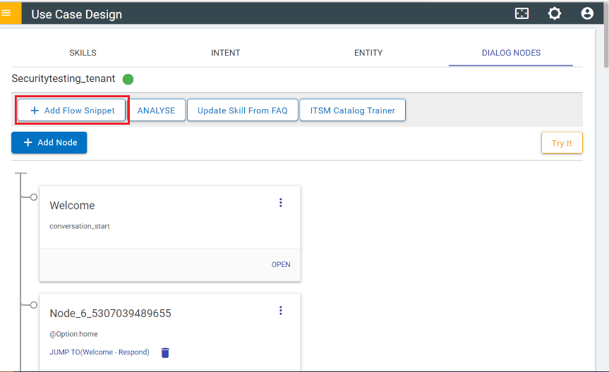 Flow snippets can be added from the use case design console (UCD console) page: