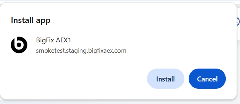 - Open the tenant-specific URLhttps://tenantURL.bigfixaex.com/ in Chrome browser.