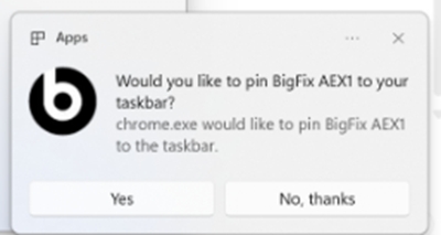 to pin the app to your taskbar. Click 'Yes' to proceed with pinning, or 'No,