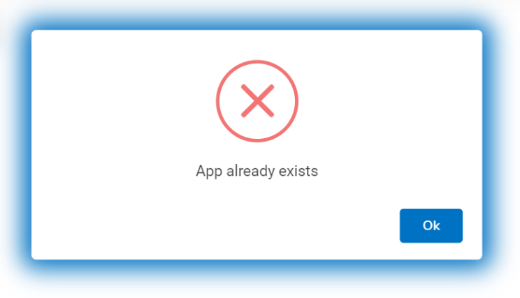 - If the user enters an app name that already exists in the list, the following