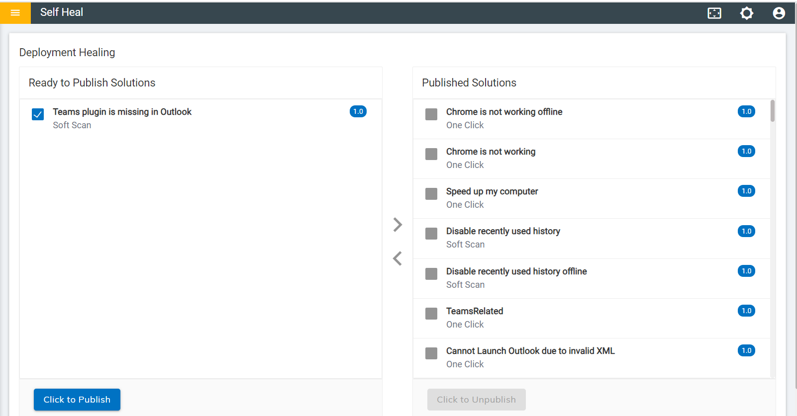 Healing is a solution where the user can click and run the solution on their own.
