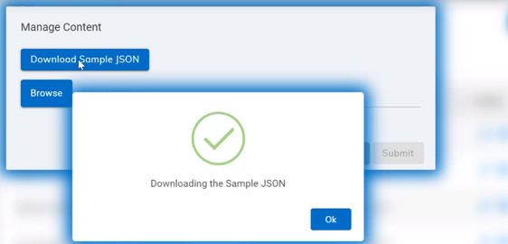 Click Download Sample JSON if you wish to download a sample JSON file. The