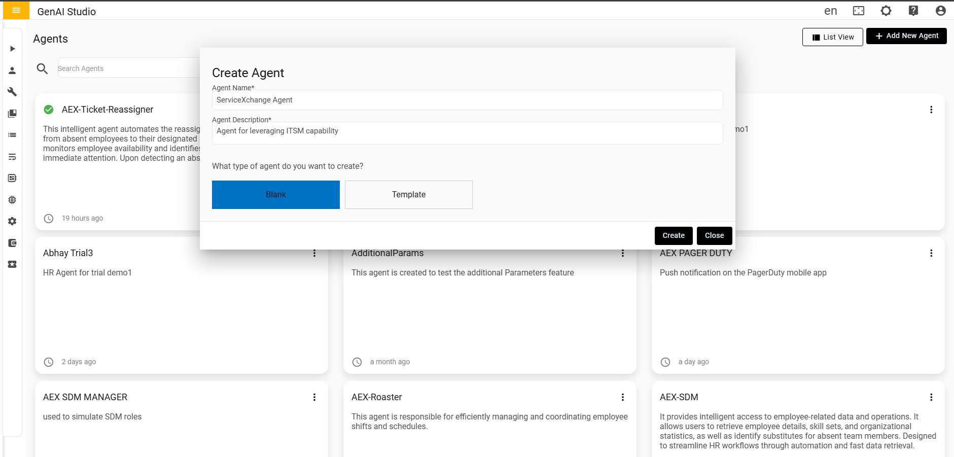 - To create a new agent, click on the Add New Agent button at the top right corner of the