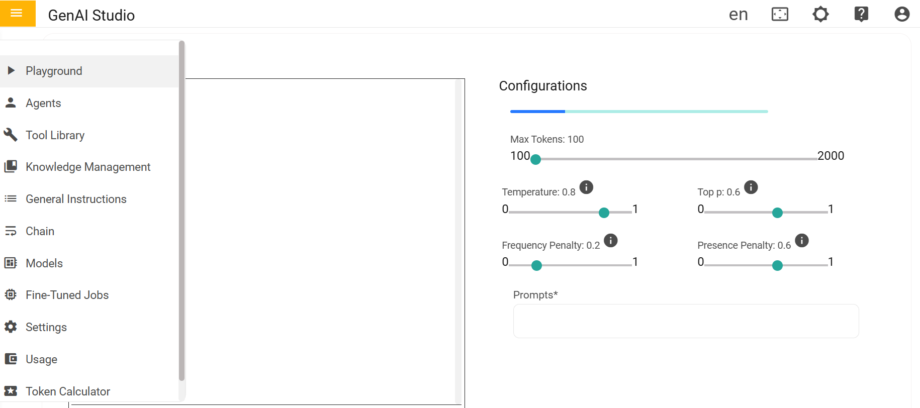 - To access the Agentic AI platform, open the following URL: https://tenant-url/admin#/genai