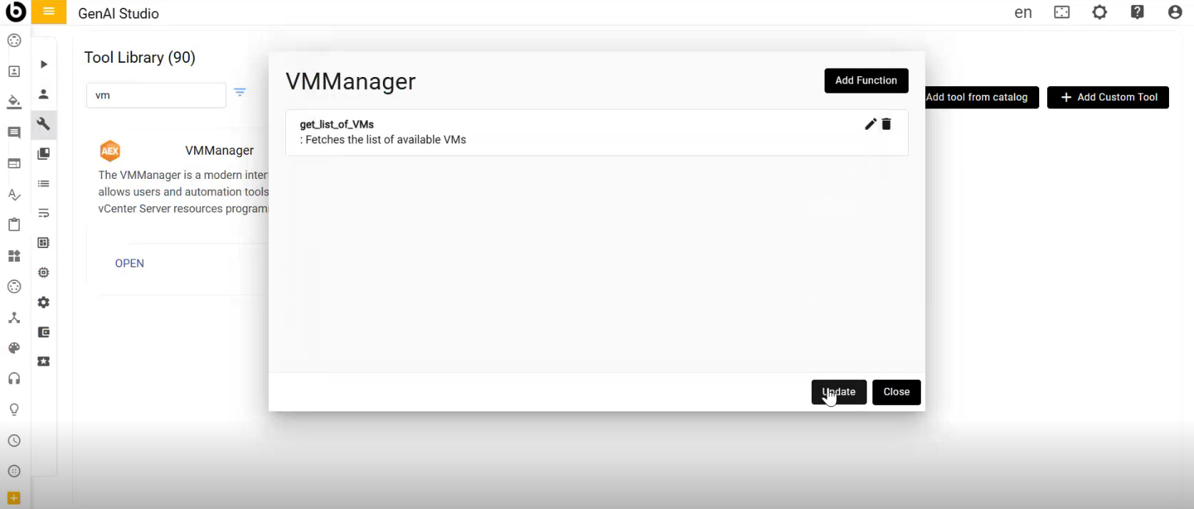 - Select the tools you want to add from the library, then click 'Update' to add them
