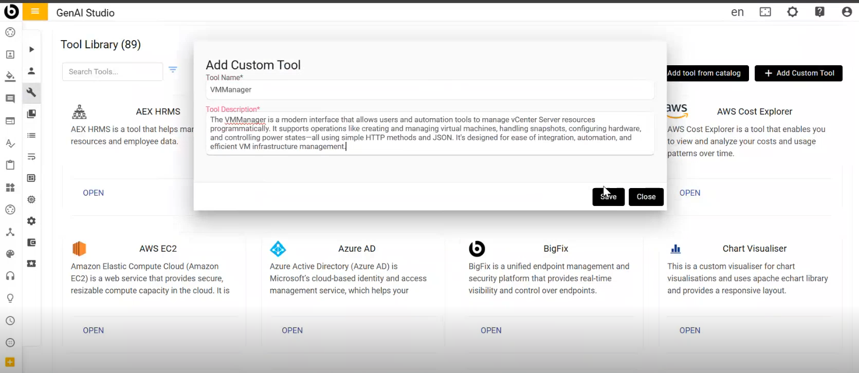A Custom Tool is a user-defined extension that enhances an AI agent's functionality. Unlike prebuilt tools available in standard catalogs, custom tools are tailored to meet specific requirements