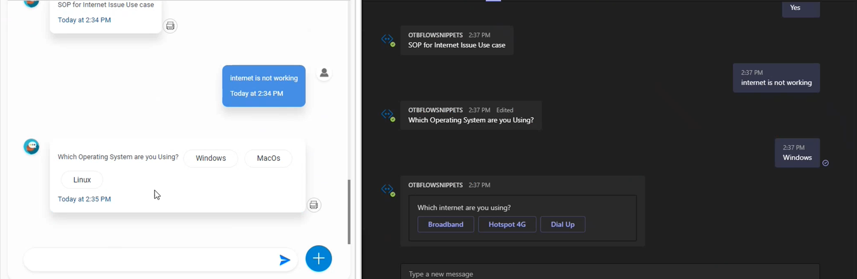 Cross channel Context or sticky sessions, allow users to pick up conversation from any channel from the same state. If a user starts a conversation on the web and abandons it, BigFix AEX can be customized to prompt the user to start the same conversation on Teams, if user starts using Teams.