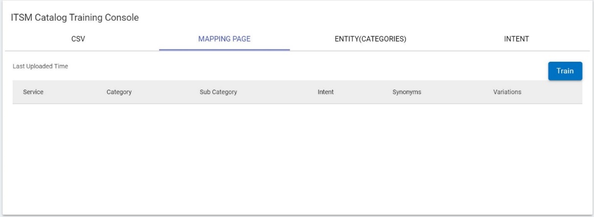 - Navigate to the MAPPING PAGE tab on the ITSM Catalog Training Console to find all the uploaded data.