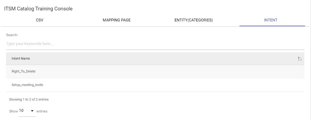 - Navigate to the ITSM Catalog Training Console and select the Intent