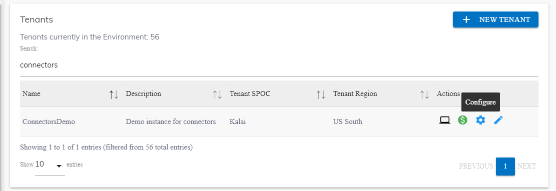 Figure 2. Tenant’s Configuration Page