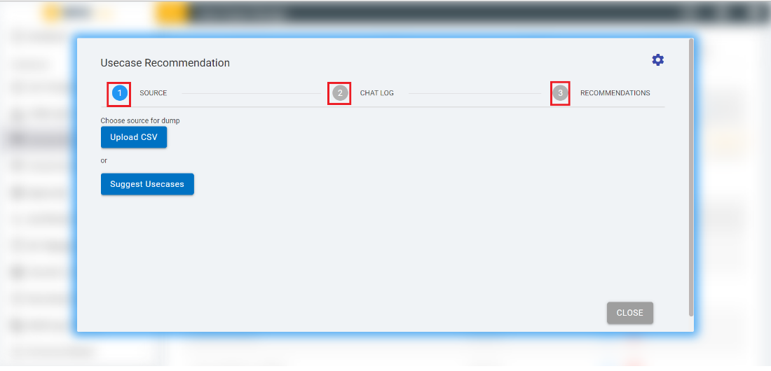 - Click on the “USECASE RECOMMENDATION” button, which will open a modal/popup in the